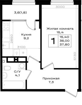 Жилая площадь 23.6 м2, кухня 12.1 м2, квартира без отделки.